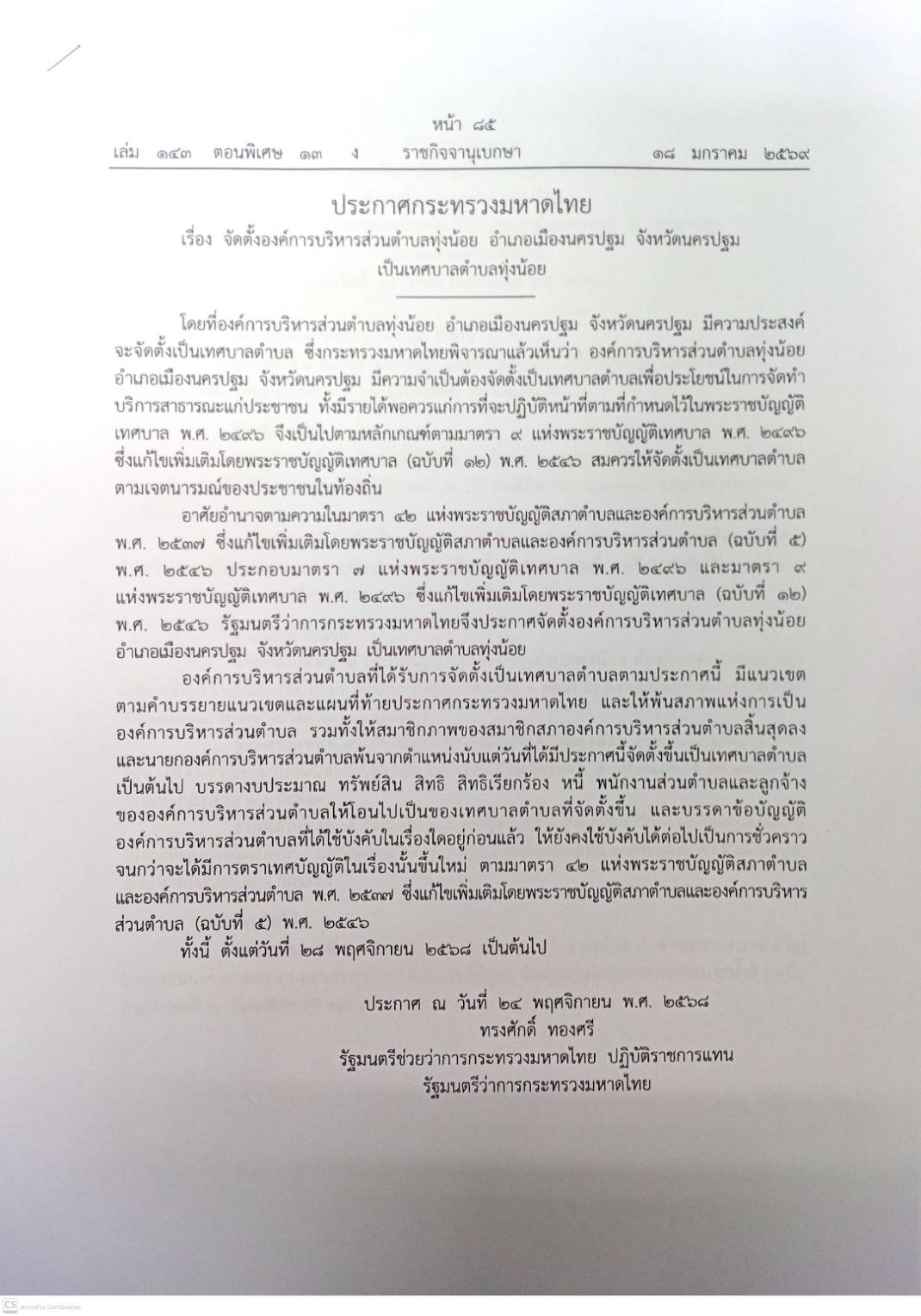 เทศบาลตำบลทุ่งน้อย อำเภอเมืองนครปฐม จังหวัดนครปฐม โทร. 0-3430-0920